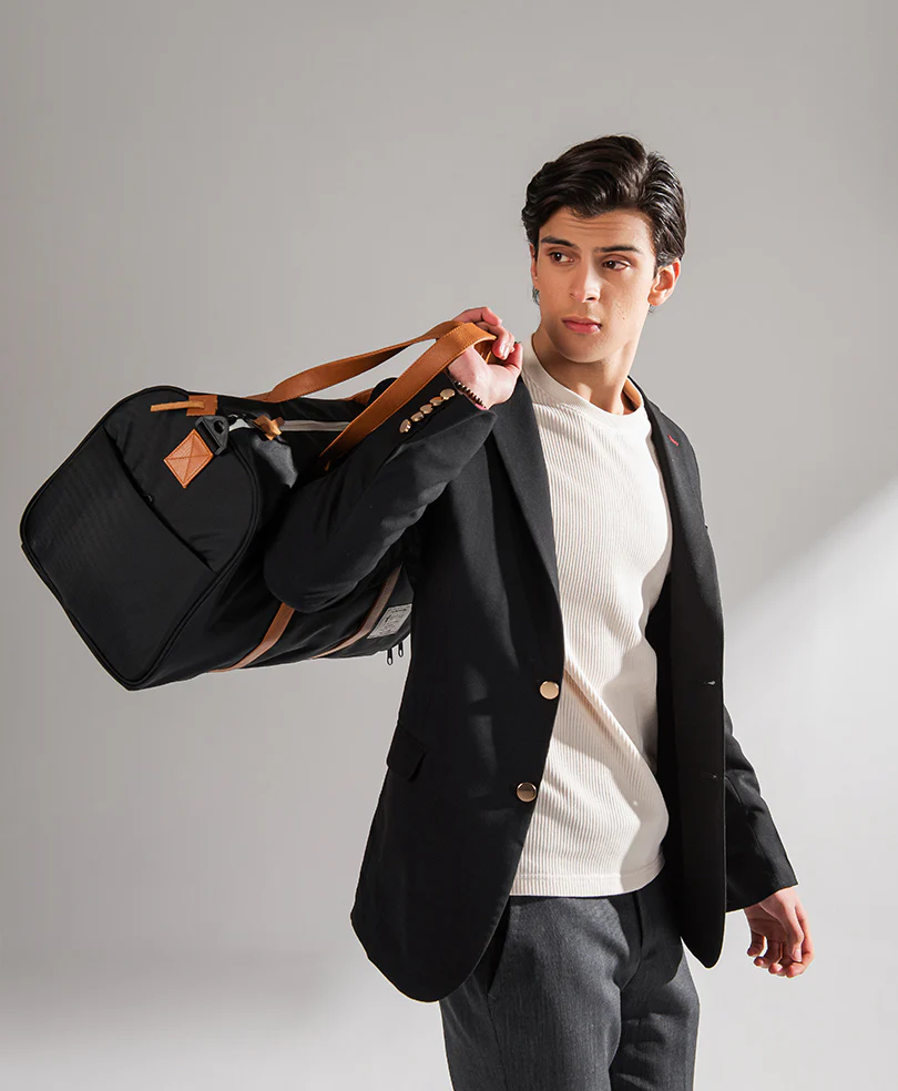 Designed for resilient and efficient travel, this duffle is the ultimate companion for road trips, featuring our distinctive shoe compartment for an extra pair. Crafted from 100% recycled EcoSystemâ„¢ fabrics, it seamlessly fits into both the overhead bin and the trunk of your car. Waterproof zippered closure protects your essentials Genuine Leather handles Removable smooth webbing…